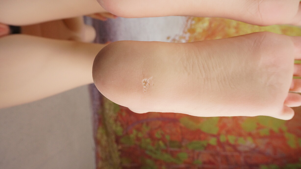 ・左足裏、ホール周辺にわずかな亀裂(左足裏:補修済み)-