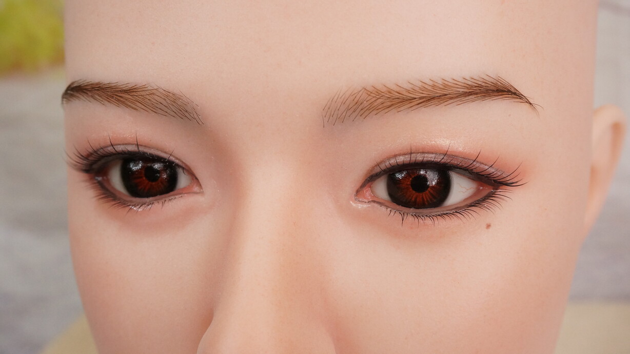 ● 眉毛・睫毛の植毛仕様で接写にも強いリアルさ