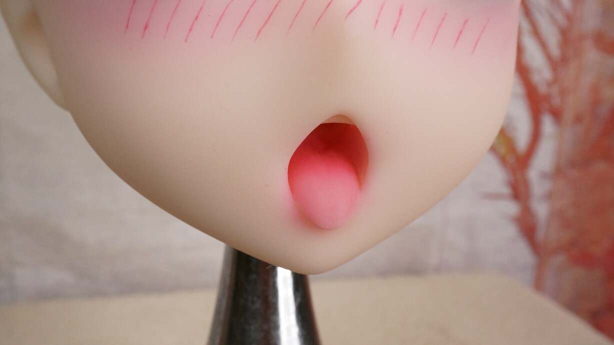 TPE特有の柔らか質感に加え、シワ・凹凸の出方が自然で、光の反射で頬・唇・目周りの印象が変化する撮影映え素材です。