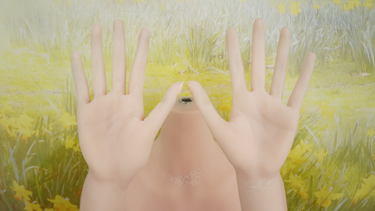 眉毛と睫毛の植毛、視点移動ありで、ディスプレイ時の表情調整に対応します。