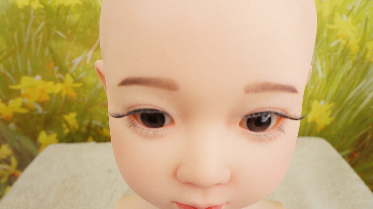 描く眉毛と貼り睫毛仕様で、顔周りの外観ディテールを意識した構成です。