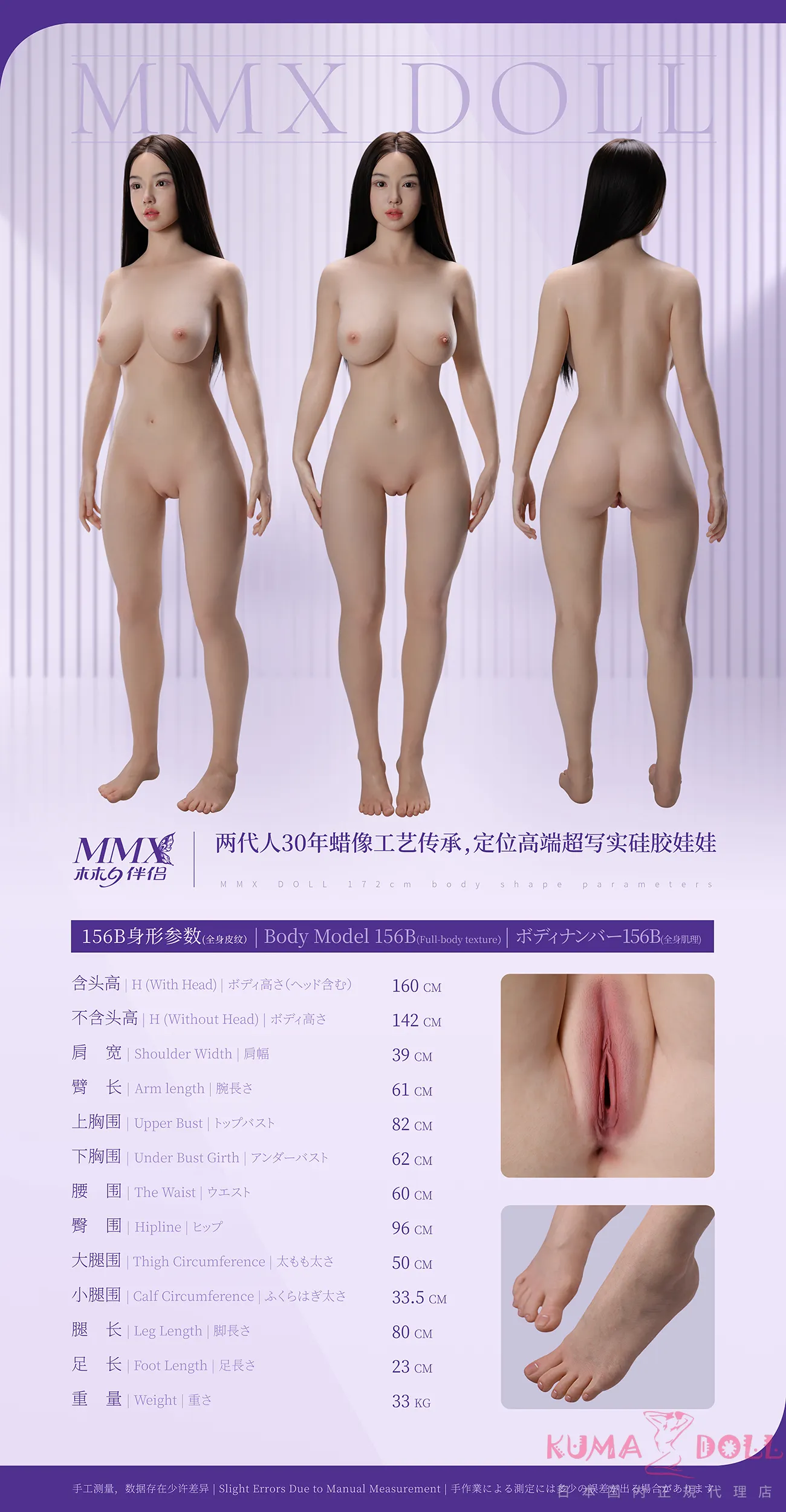 【新品】MMXDOLL 156cm Eカップ 夢婷(Mengting)ヘッド 超擬真肌テクスチャーあり フルシリコン製ラブドール MM 0040