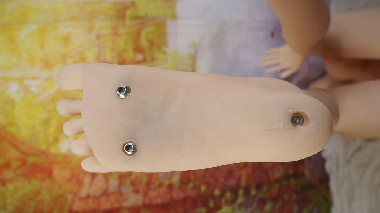 ・右足裏に薄い亀裂(補修済み)-